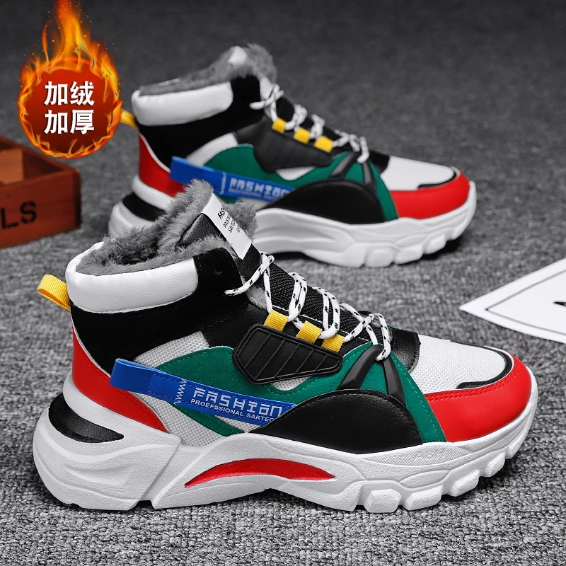 New design cheap autumn winter high top fur sneakers daddy shoes basketball men fashion light weight shoes